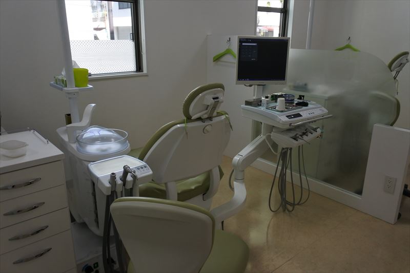 ますだ歯科医院は内外装ともに白を基調にした清潔感のある診療室で、診療所のイメージカラーのアップルグリーンをアクセントにして安心して治療が受けられる落ち着いた雰囲気を作っております。